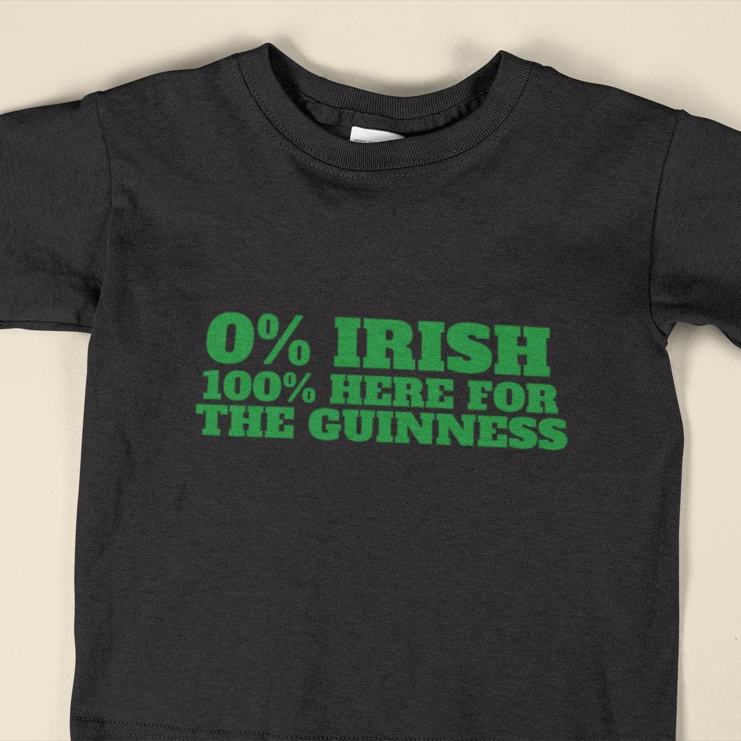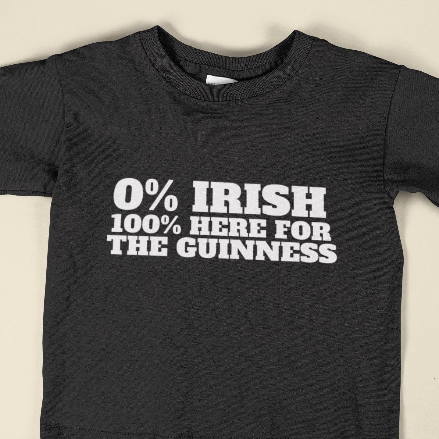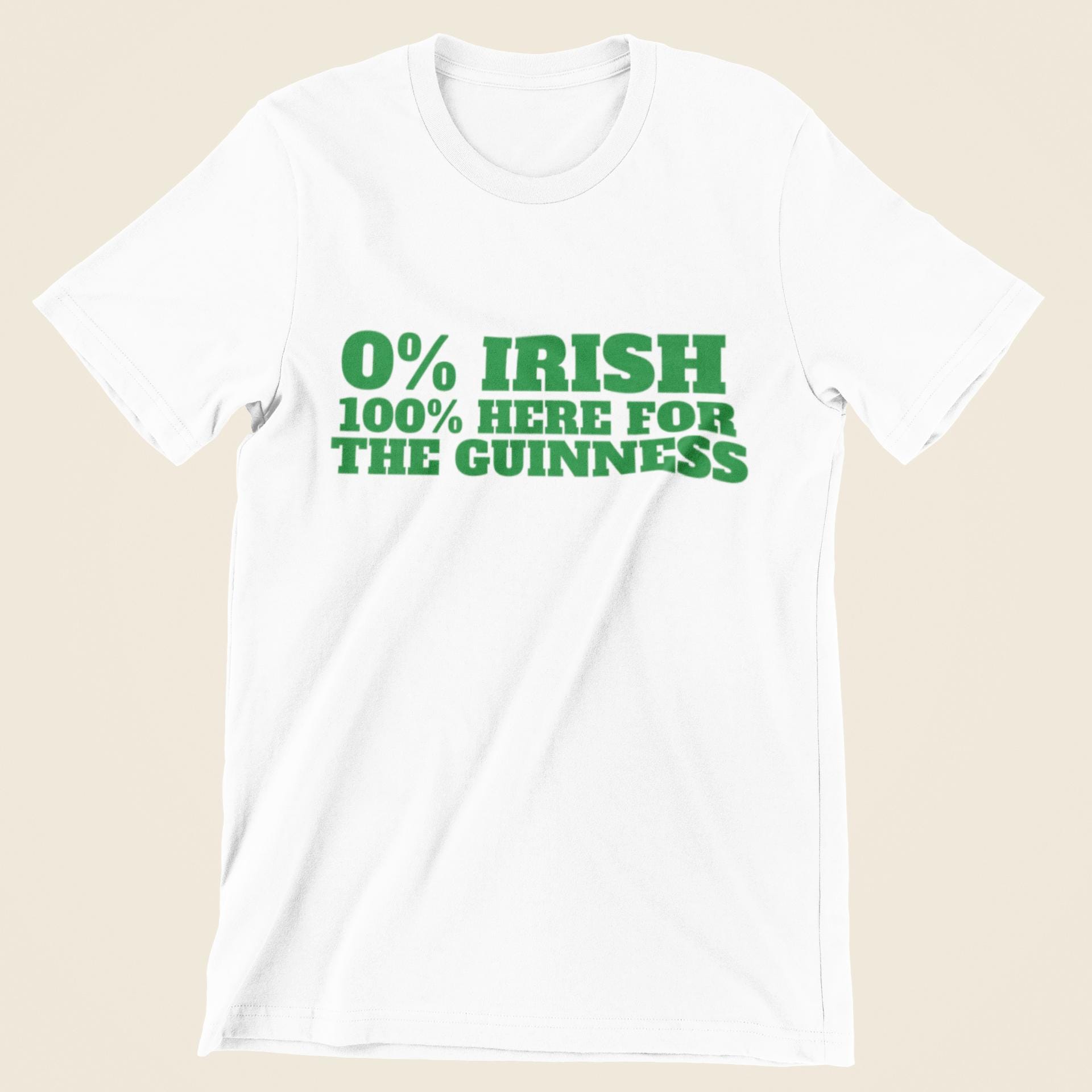 0% Irish Here For The Guinness Funny T-Shirt | St Patricks Day Gift for Men & Women | Unisex Sizes in Black or White