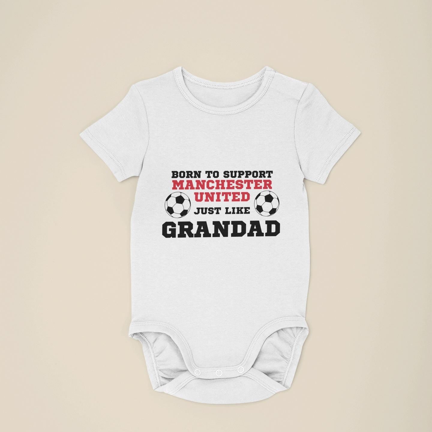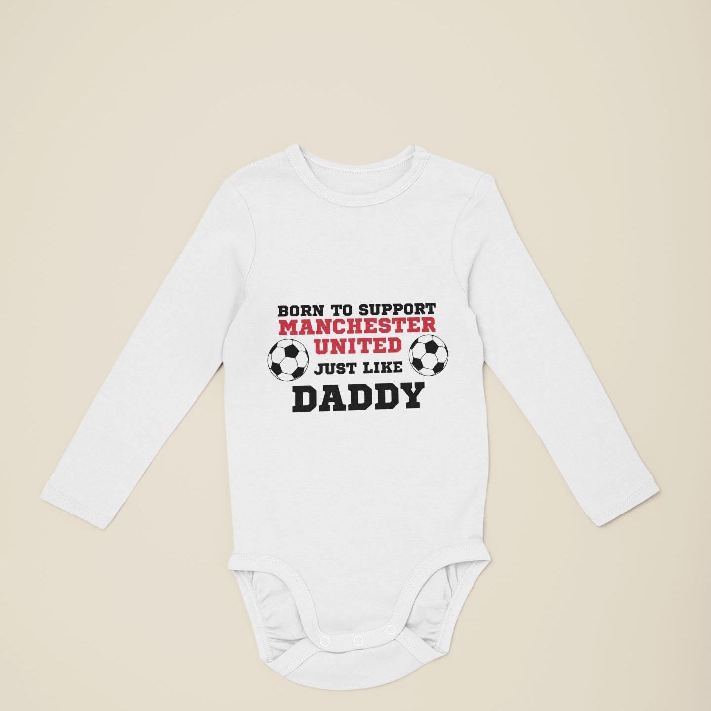 Born to Support Manchester United Just Like Daddy, Grandad, Mummy, Nanna Football Baby Vest, Manchester United Bodysuit | Baby Gift