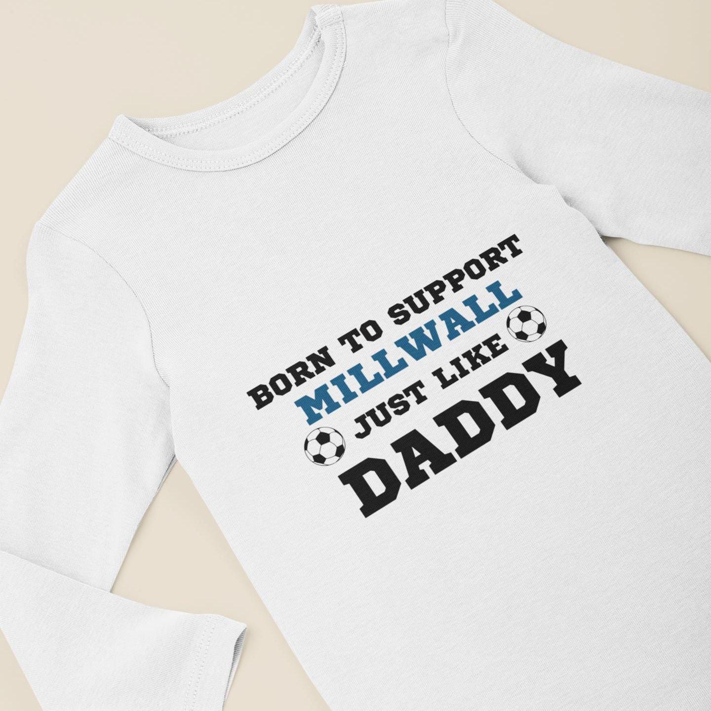 Born to Support Millwall Just Like Daddy, Grandad, Mummy, Nanna Football Baby Vest, Millwall Football Bodysuit | Baby Gift