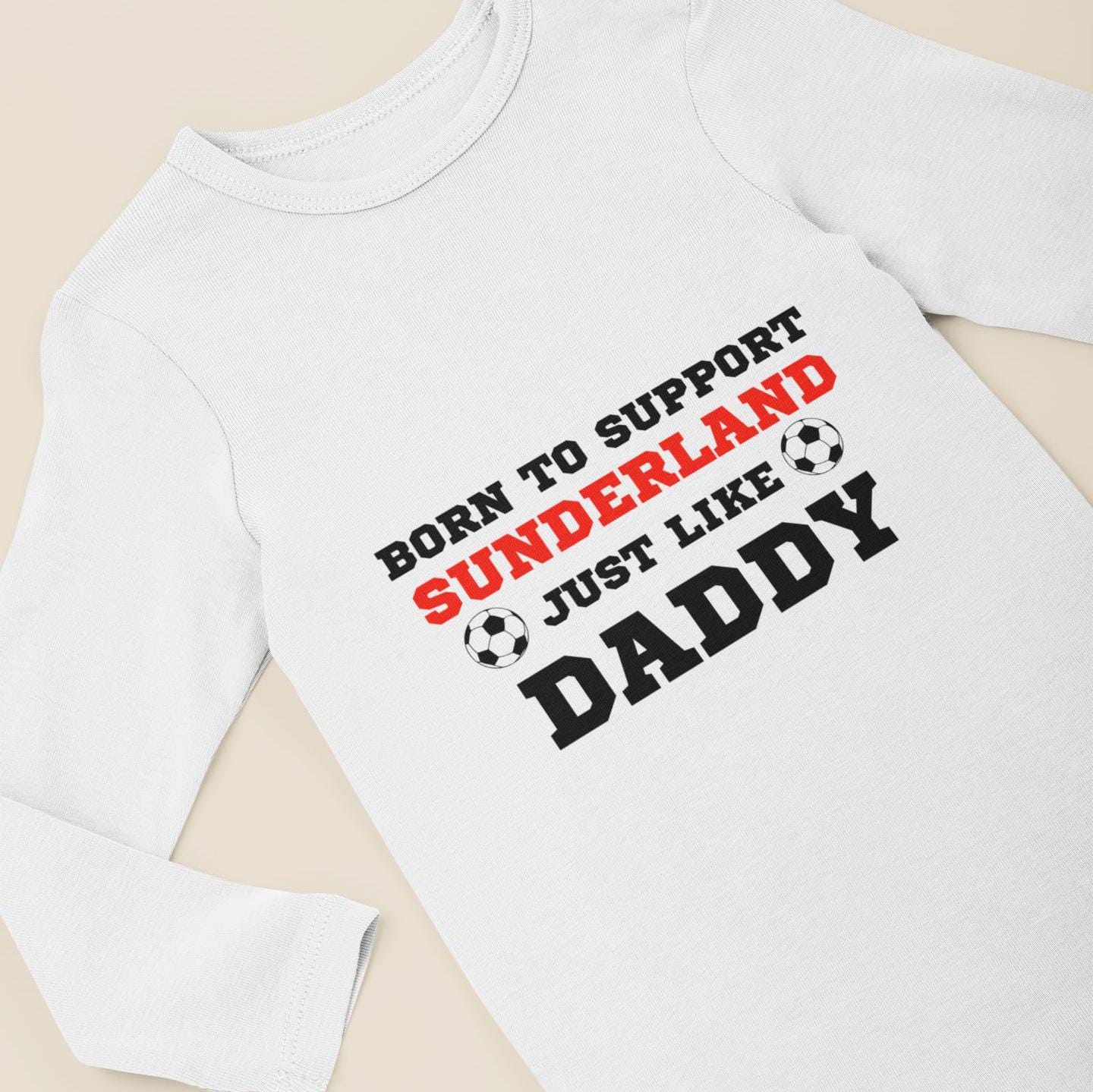 Born to Support Sunderland Just Like Daddy, Grandad, Mummy, Nanna Football Baby Vest, Sunderland Football Bodysuit | Baby Gift