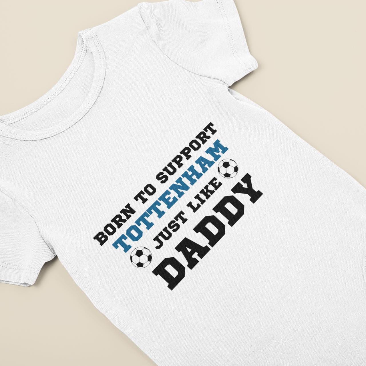 Born to Support Tottenham Just Like Daddy, Grandad, Mummy, Nanna Football Baby Vest, Tottenham Bodysuit | Baby Gift