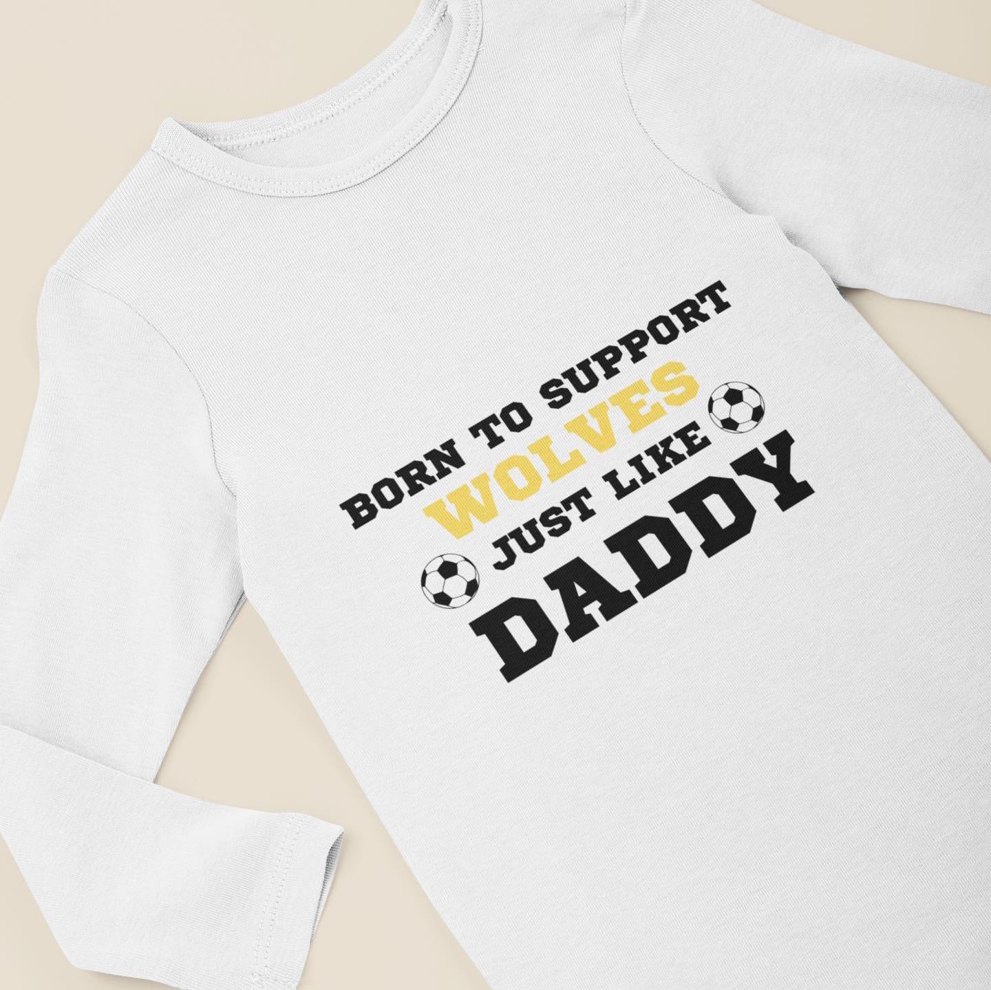 Born to Support Wolves Just Like Daddy, Grandad, Mummy, Nanna Football Baby Vest, Wolves Football Bodysuit | Baby Gift