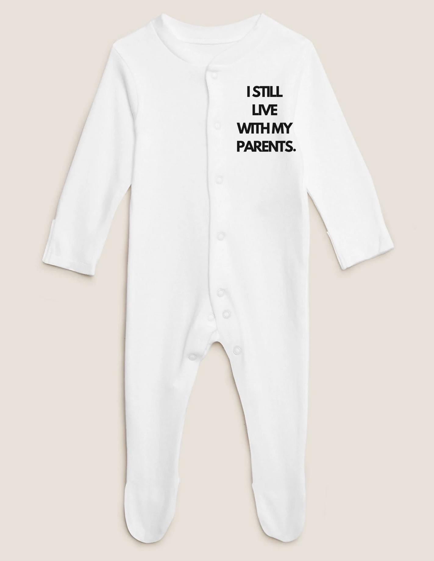 I Still Live With My Parents Baby Grow | Funny Novelty Baby Onesie & Bib | Cute Baby Outfit, Perfect Gift for New Parents
