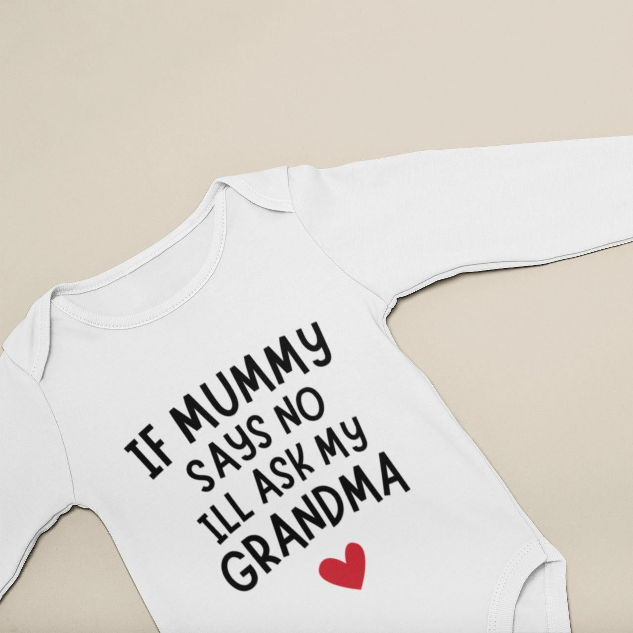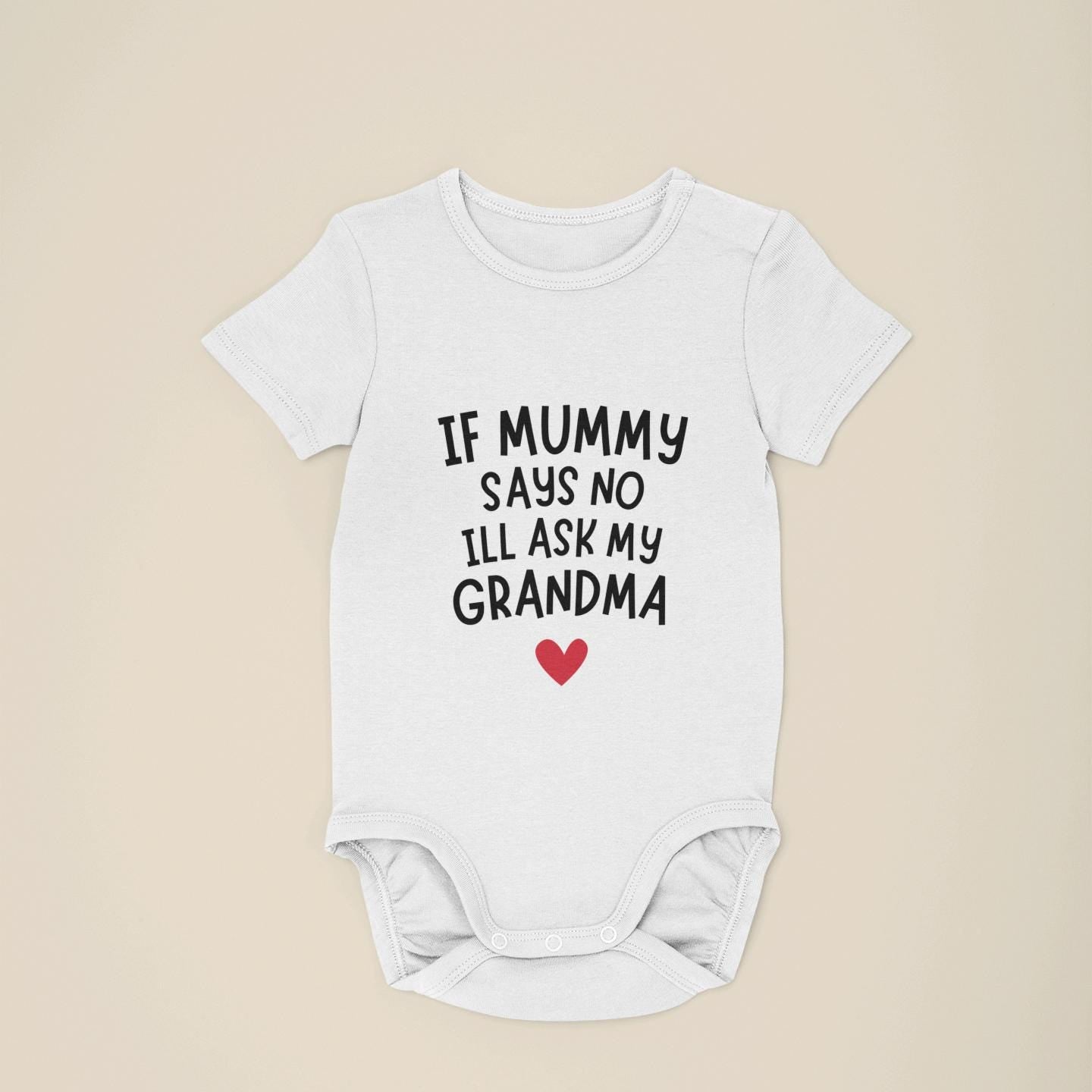 If Mummy Says No I'll Ask Grandma, Vest bodysuit, baby gift, baby grow, baby bib, personalised baby gift, Grandma Funny Gift