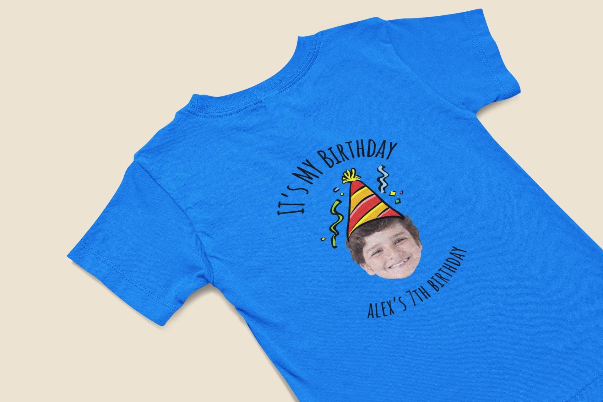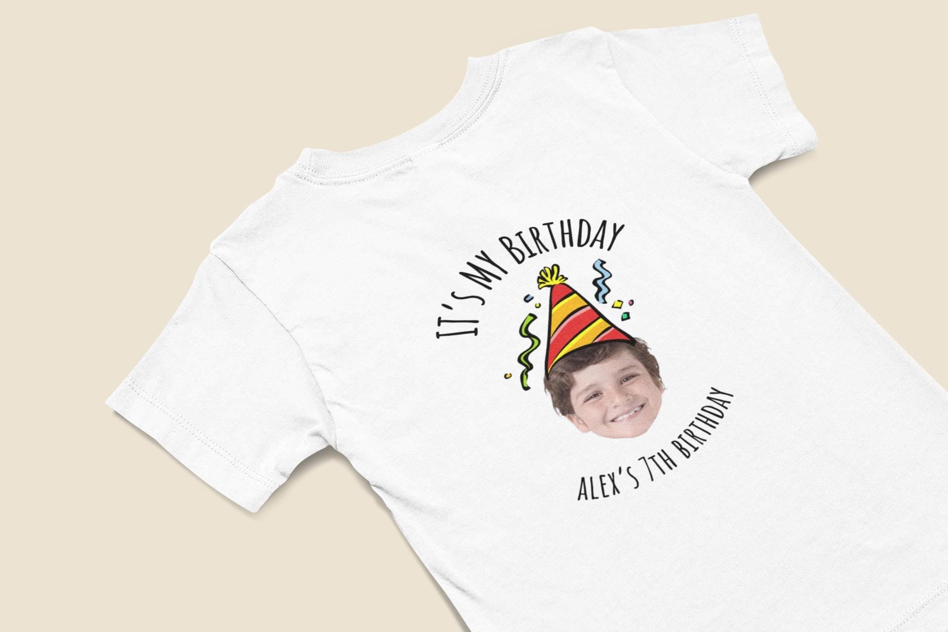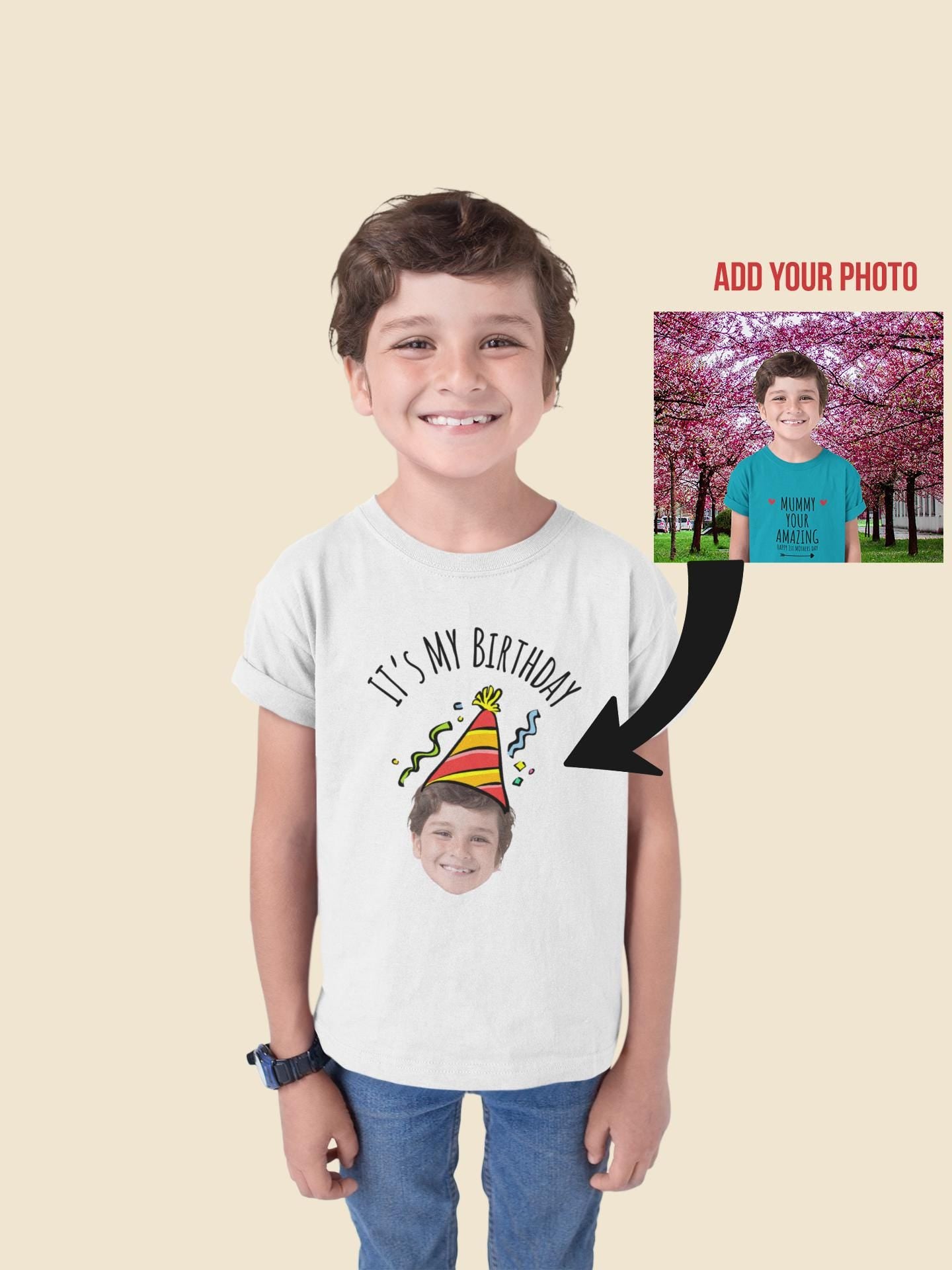Kids Custom Face Birthday TShirt | Funny Personalized Photo Tee for Birthday Child | Unique Party Outfit