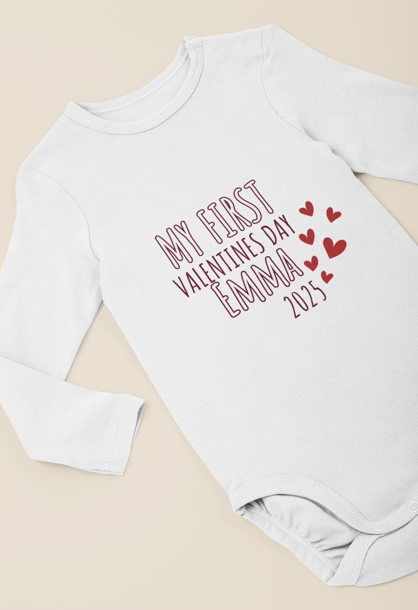 My First Valentines Personalised Vest Bodysuit, Baby Bib, Baby Vest | Custom Name Baby Gift, Funny Baby Grow, Unique Personalised Baby Suit