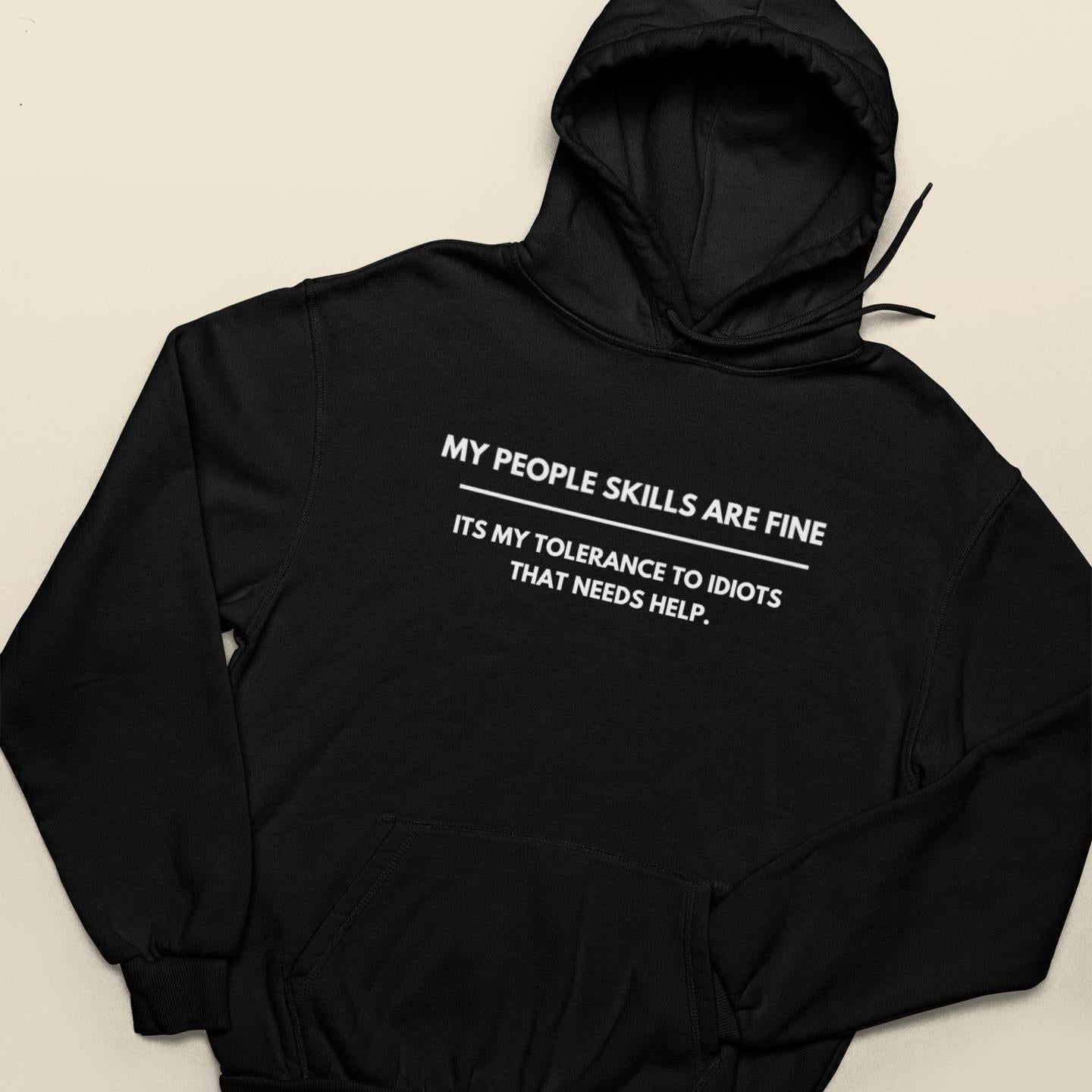 My People Skills Are Fine, Intolerance To Idiots Funny T-Shirt, Novelty Gift Hoodie for Men or Women, Unisex Sizes in Black or White