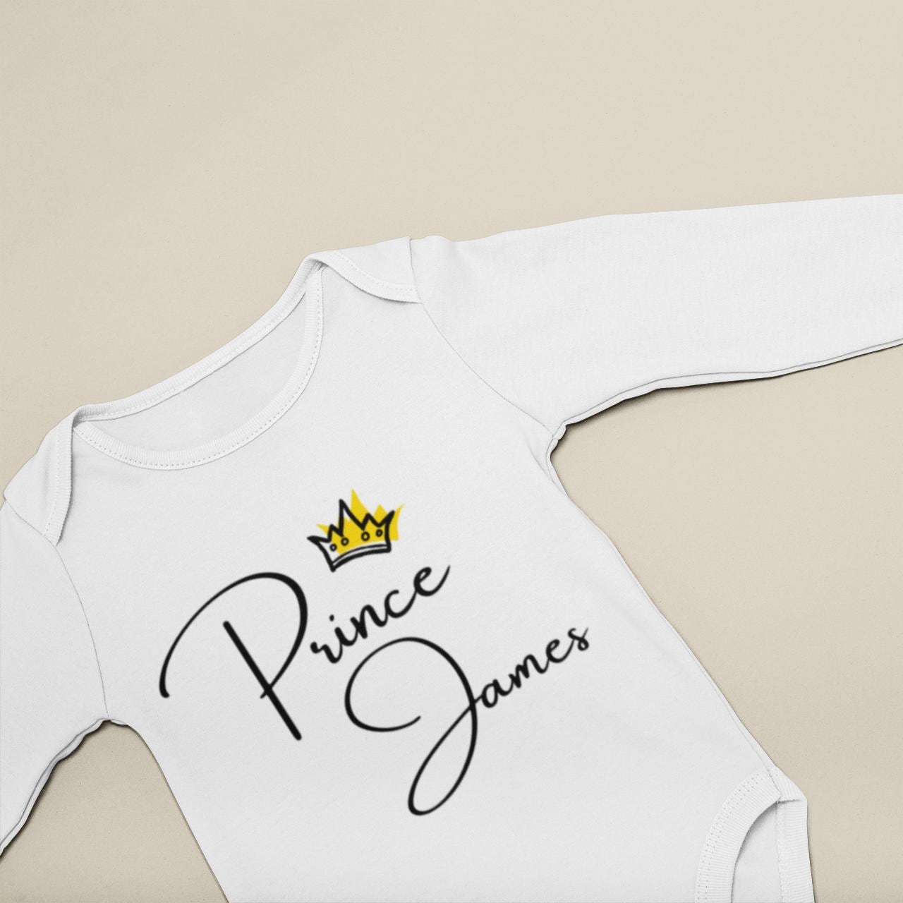 Personalised Prince Princess Bodysuit | Custom Name Baby Gift, Unique Baby Vest & Bib, Customized Baby Grow for Newborns