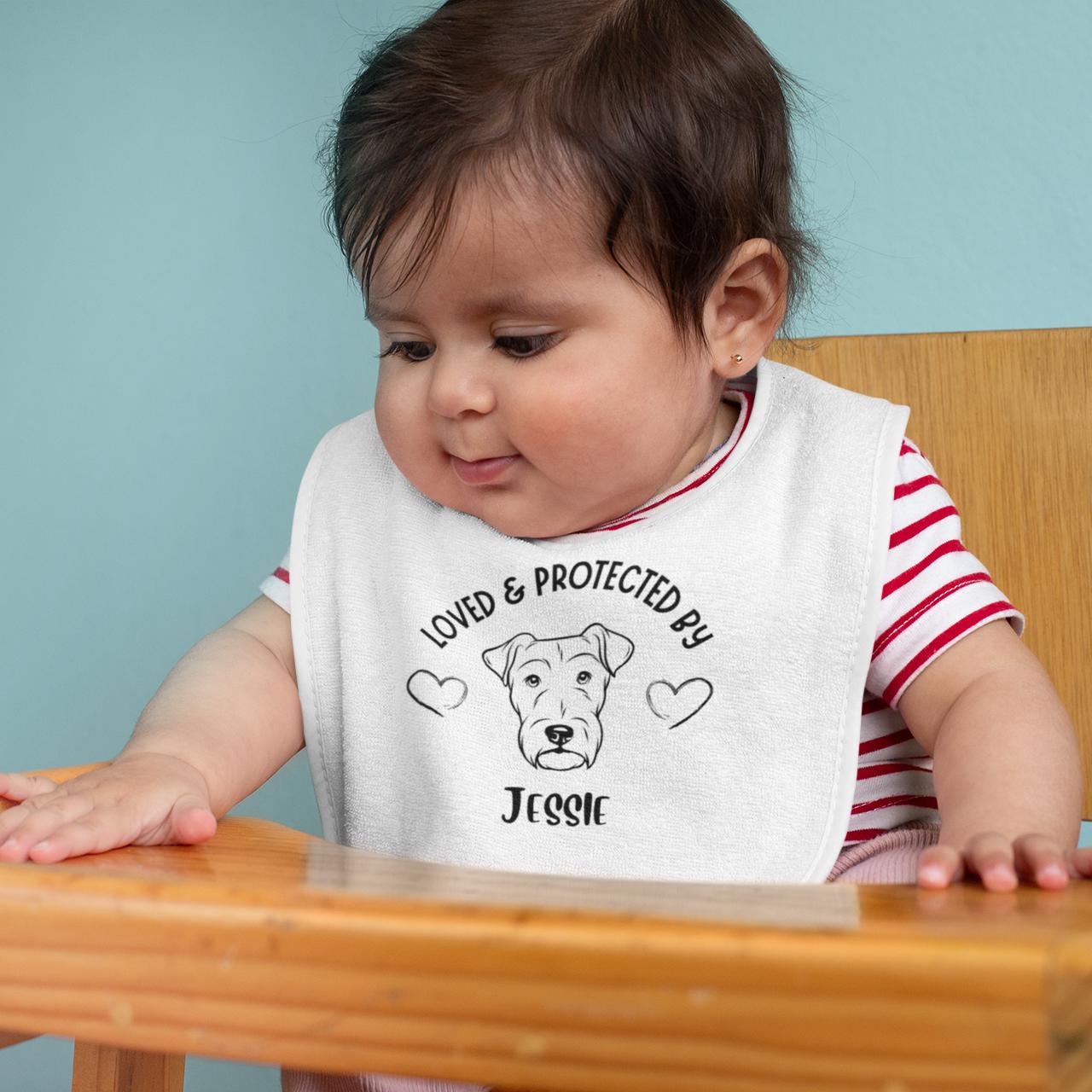 Personalized Dog Name Baby Onesie® | Love & Protected By Onesie® and Dog Name Bib | Baby Shower Gift for Newborns, Dog Owner Baby Gift