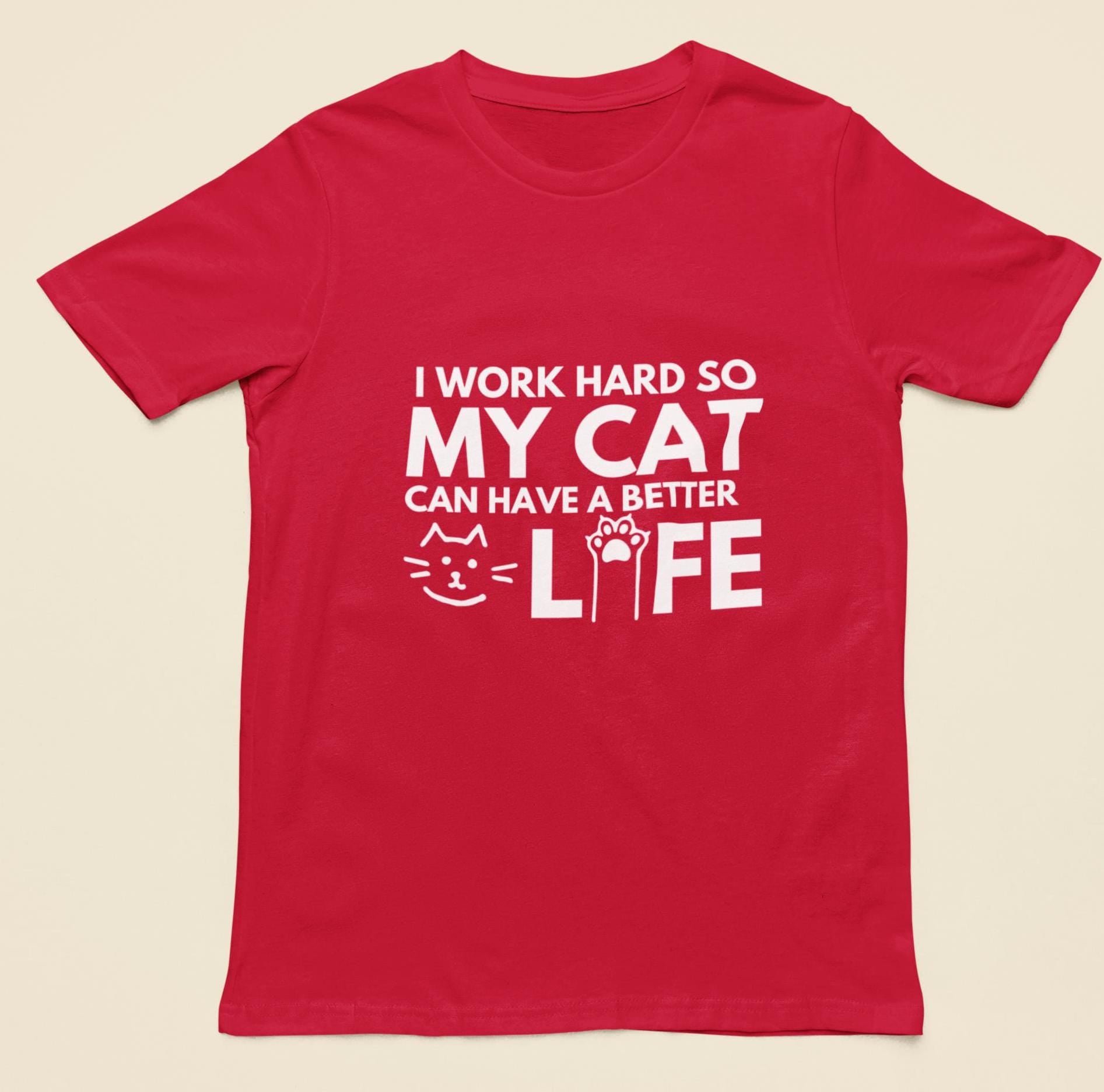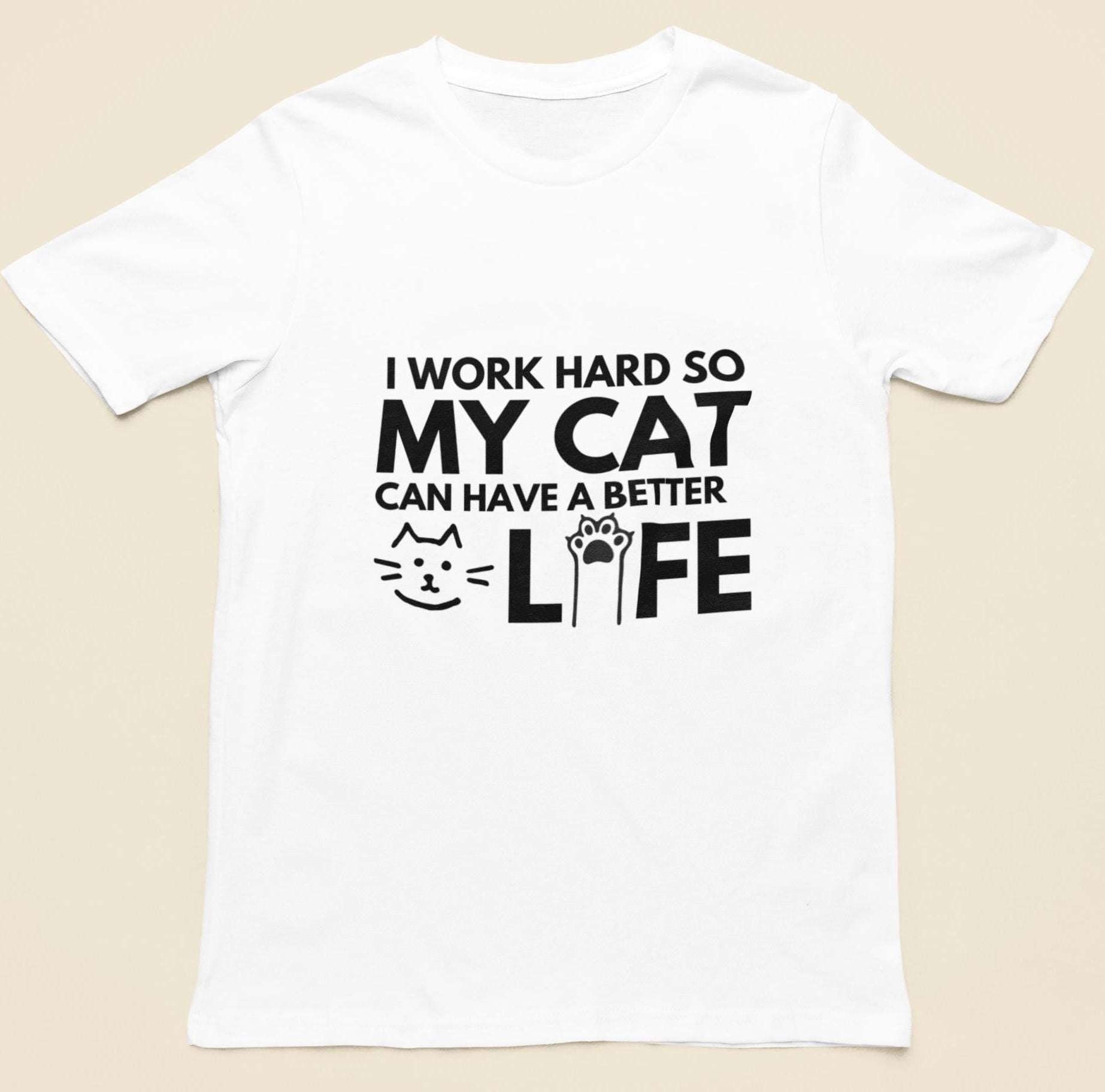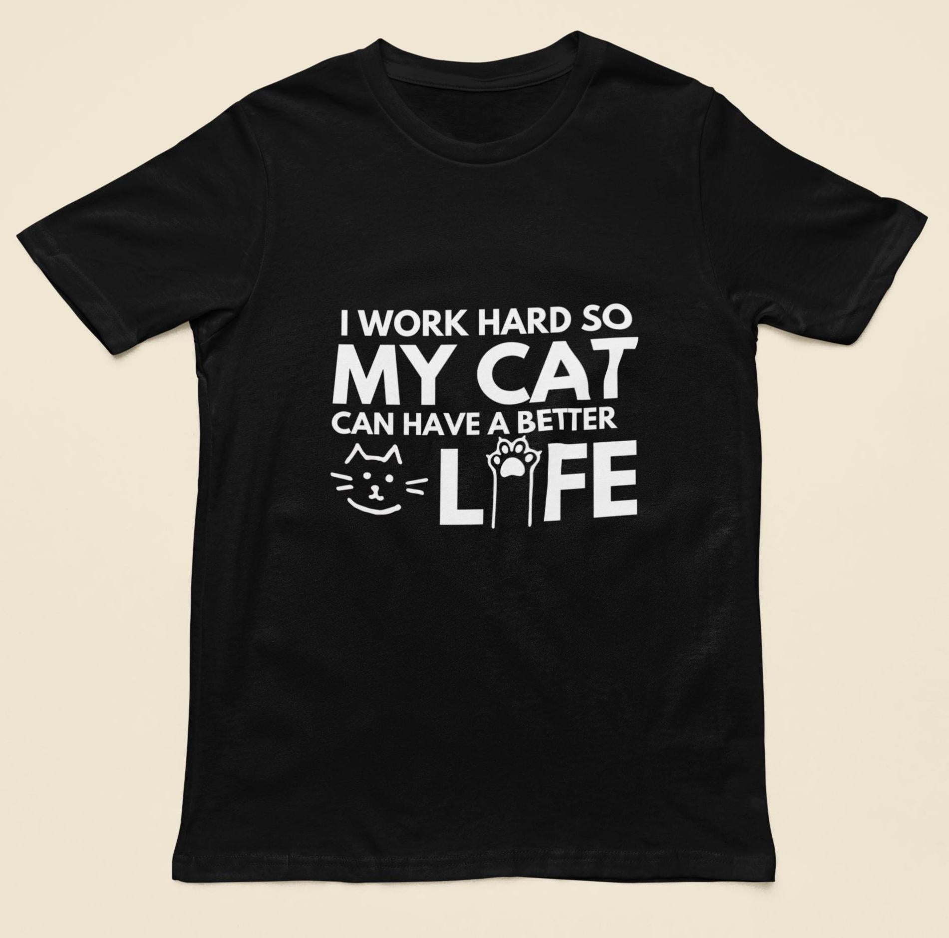Unisex Funny Cat Lover T-Shirt – "I Work Hard So My Cat Can Have a Better Life" – Cute Gift for Cat Owners, Pet Lovers Tee